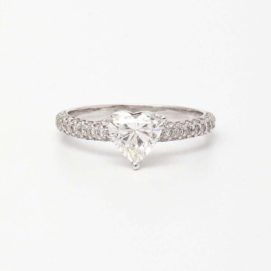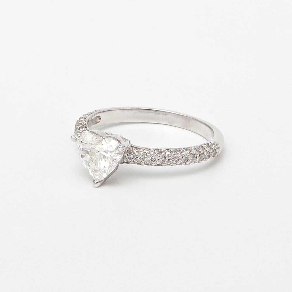 Joya elaborada a mano con acabado brillante, Anillo de compromiso con diamante central corte brillante en forma de corazón y diamantes de adorno corte brillante redondo tupidos, engaste en uñas.