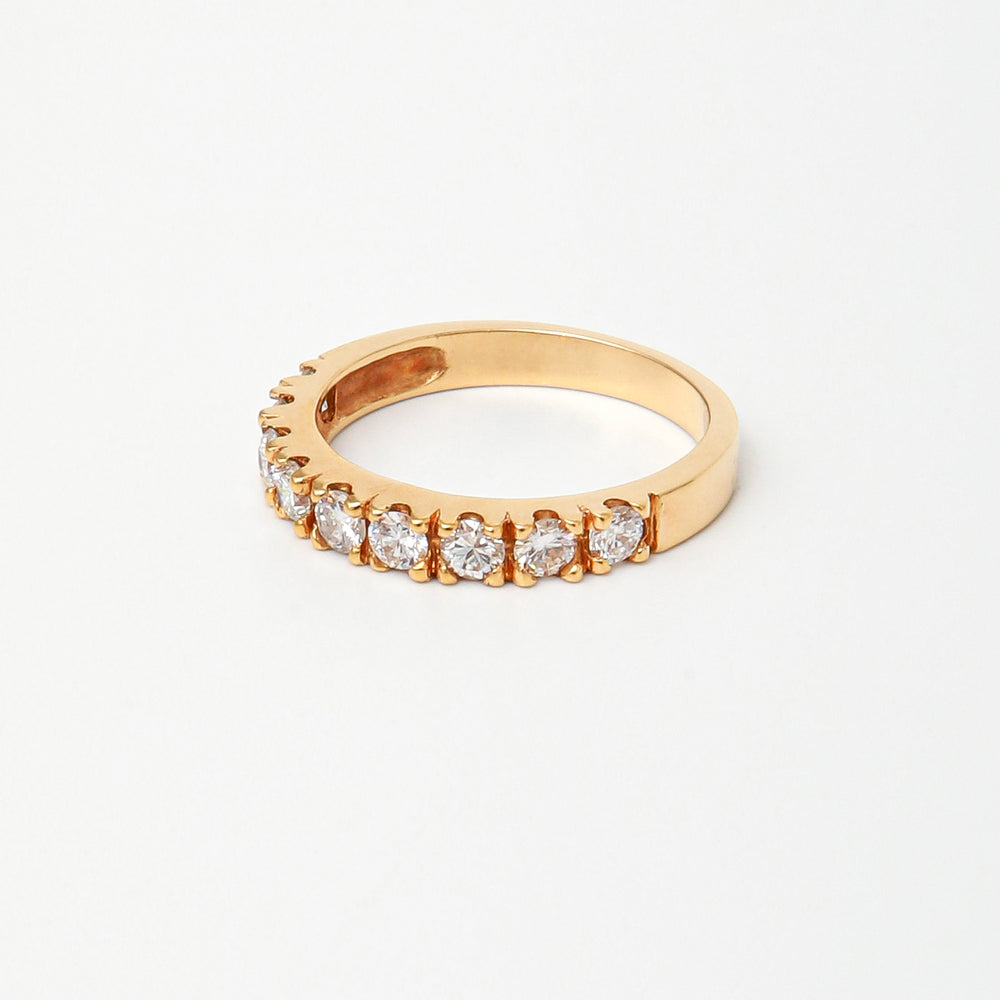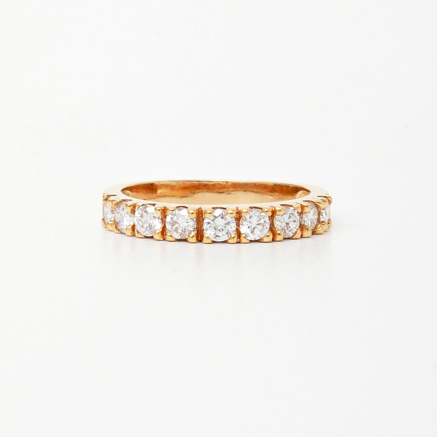 Joya elaborada a mano con acabado brillante, Argolla de matrimonio con una línea de diamantes corte redondo, engaste en uñas.