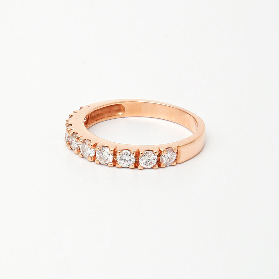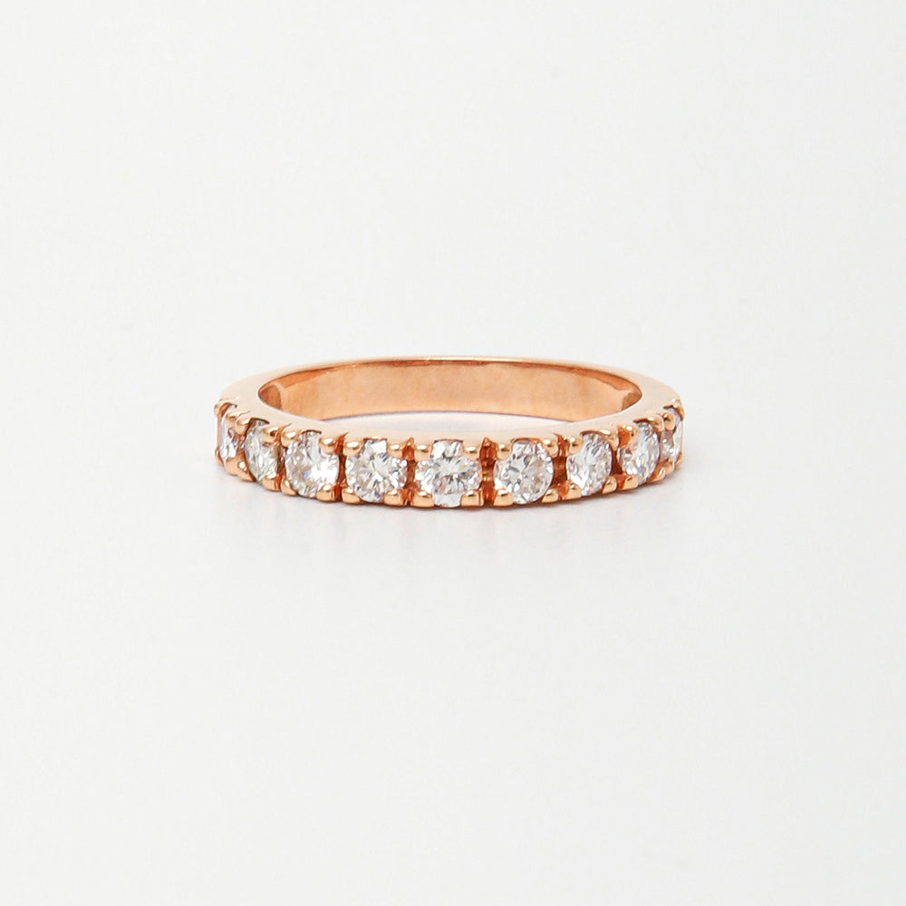Joya elaborada a mano con acabado brillante, Argolla de matrimonio con una línea de diamantes corte redondo, engaste en uñas.