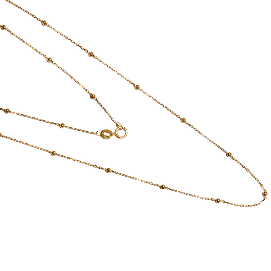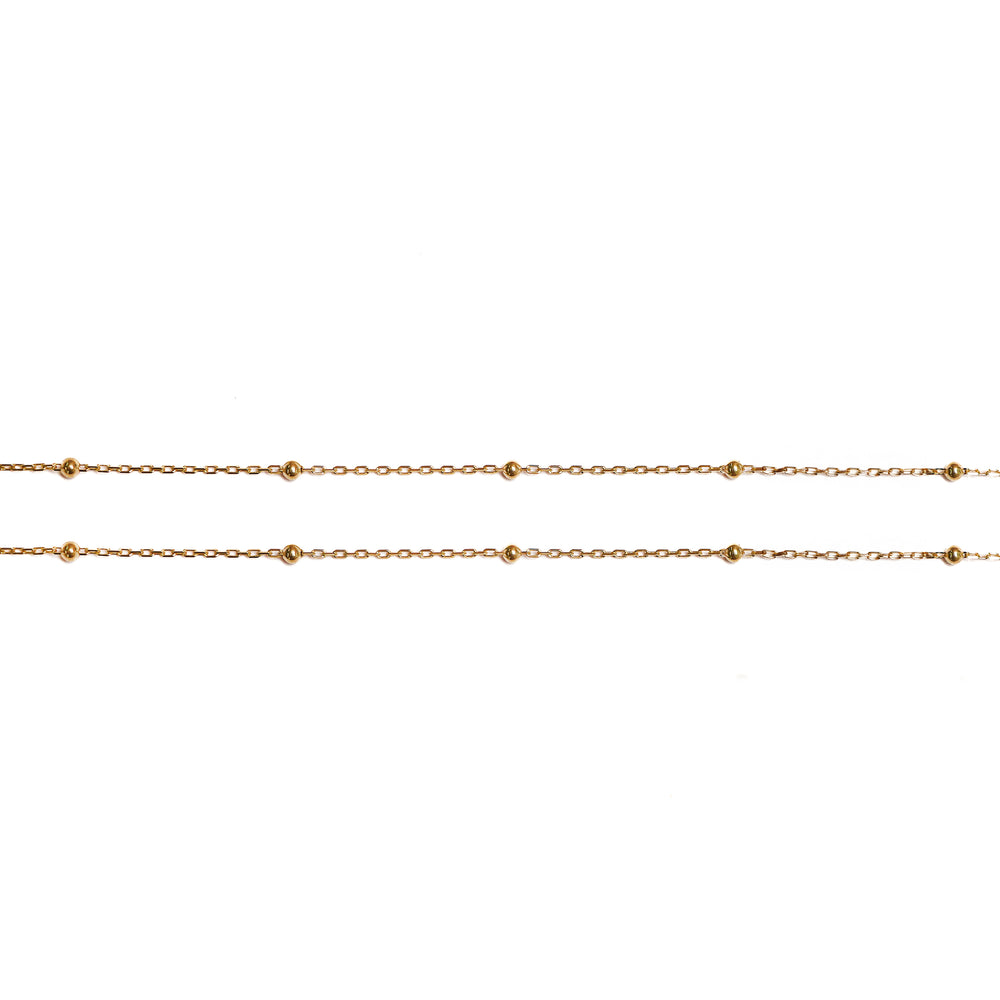Cadena tejido argolla tres balines pequeños de 45 cm de largo. Elegante y versátil, ideal para uso diario o para ocasiones especiales.