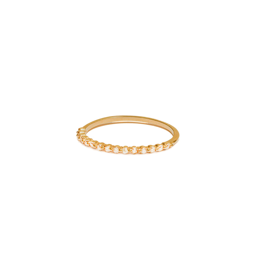 Joya elaborada a mano con acabado brillante, anillo delgado con línea de circones pequeños ideal para uso diario o momentos especiales.