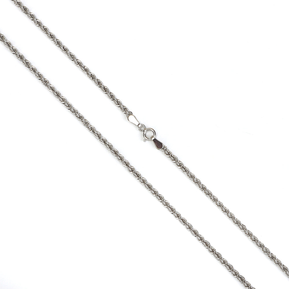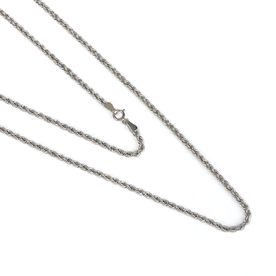 Cadena tejido cordón delgada de 50cm de largo con 2mm de ancho en oro blanco italiano 18k.