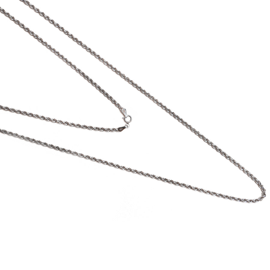 Cadena tejido cordón delgada de 60cm de largo con 2mm de ancho en oro blanco italiano 18k.