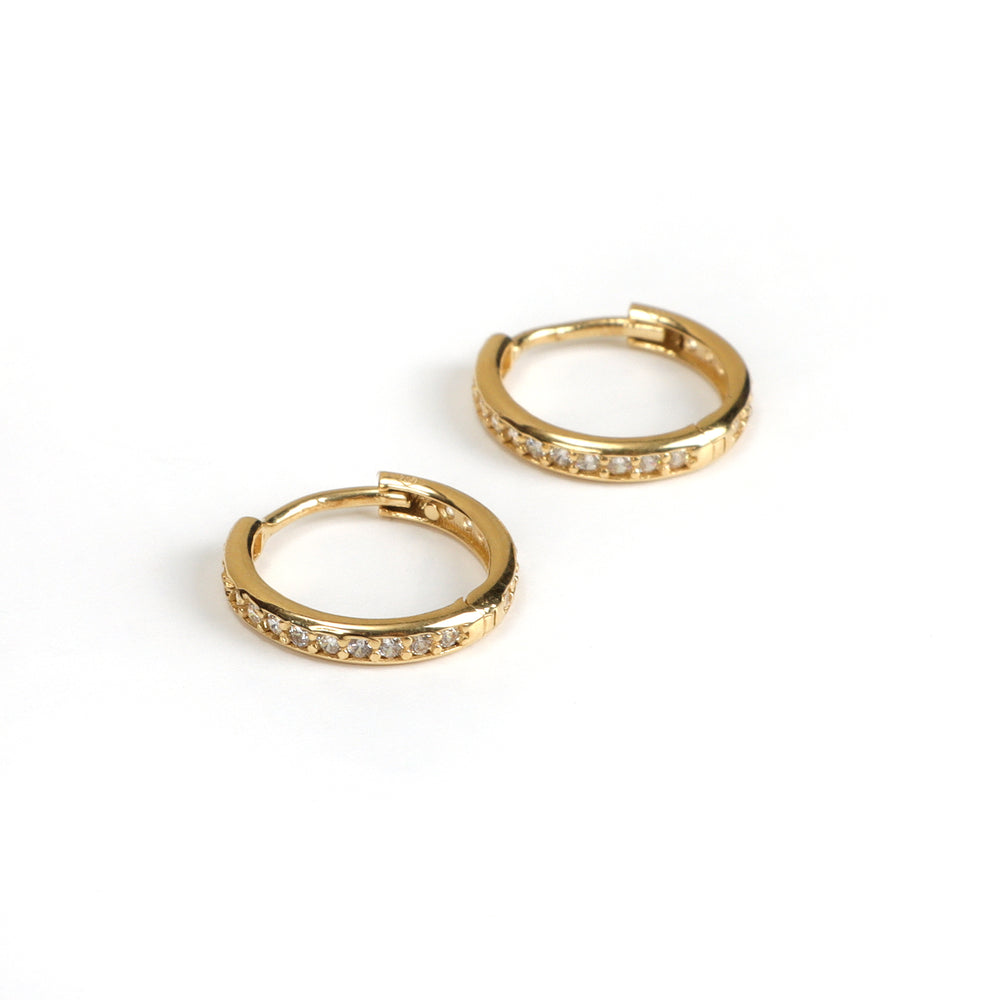 Argollas huggies mini con cierre de seguridad con línea de piedras. Diseño atemporal pensado para celebrar el amor en cada etapa.