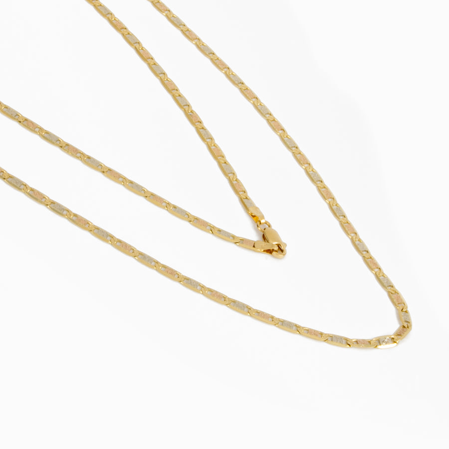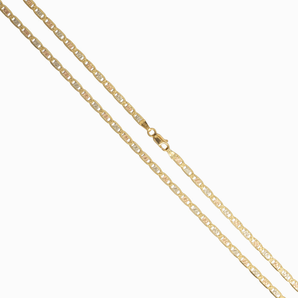 Cadena tejido militar de 60cm de largo 3mm de ancho tres oros italiano 18k.