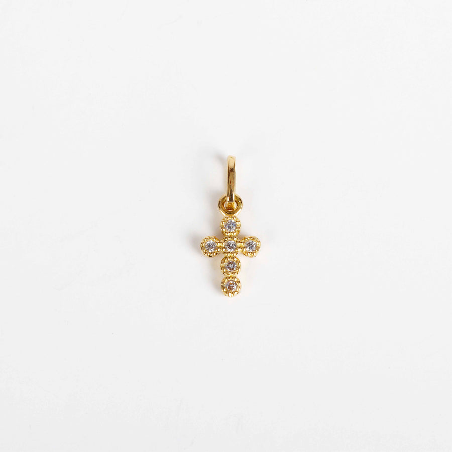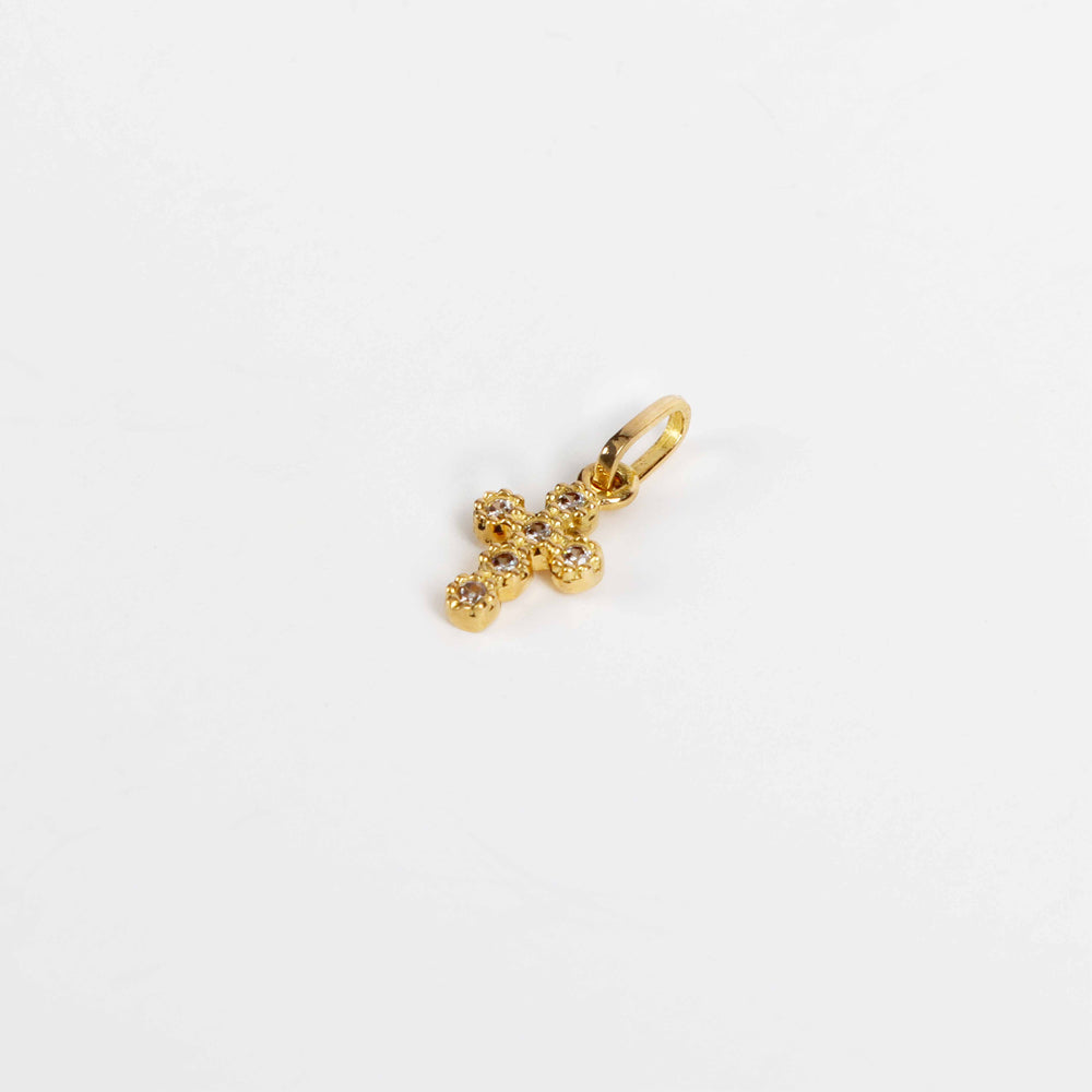 Dije cruz mini con circones de 1.5 cm de largo en oro amarillo 18k.
