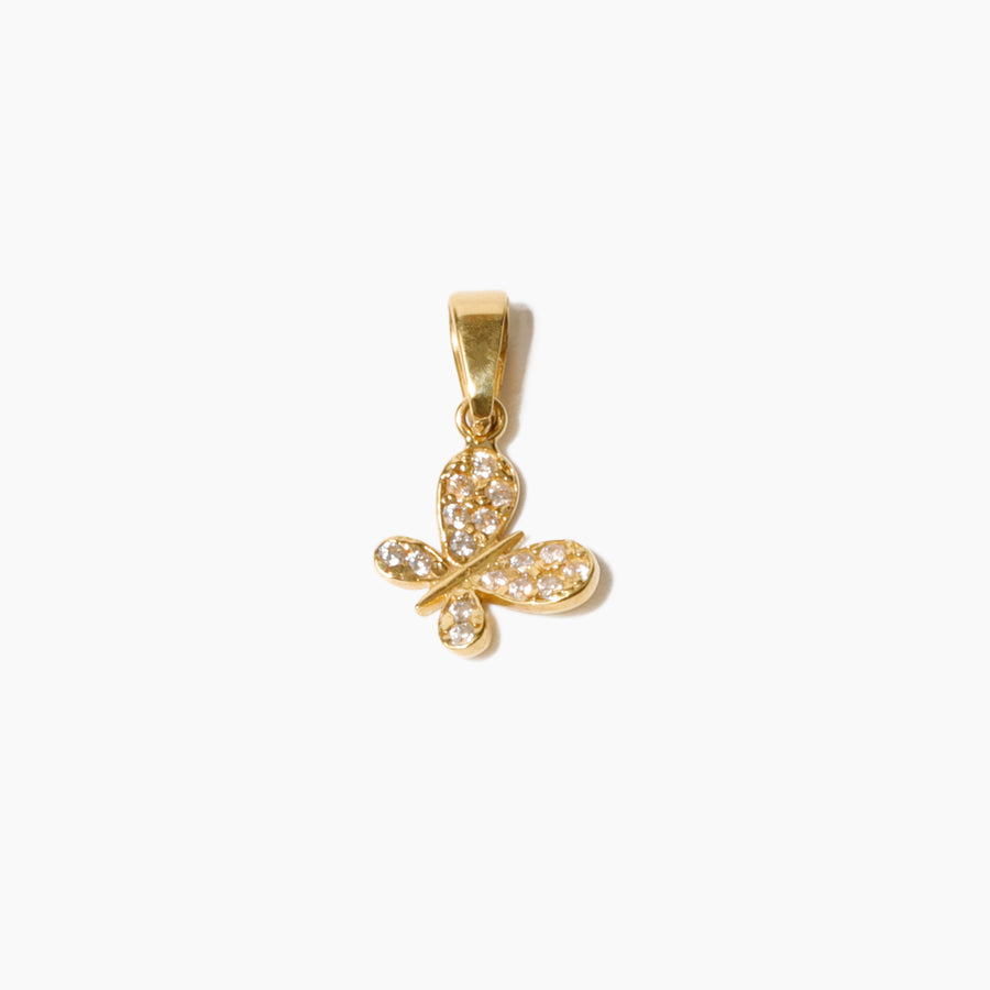 Dije de mariposa con circones de 1.6cm de largo en oro italiano 18k.
