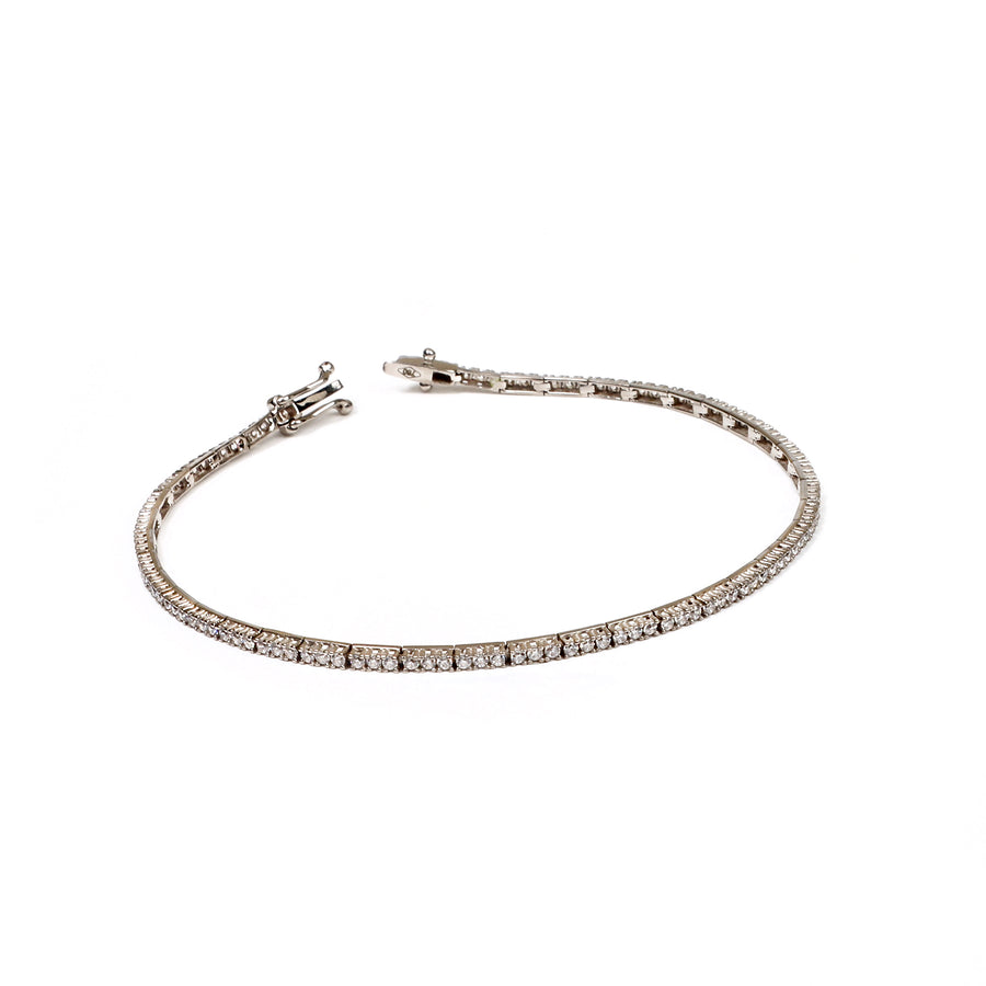 Pulsera Tenis oro blanco con circones  de 19,5cm de largo por 2mm de ancho en oro italiano 18k.