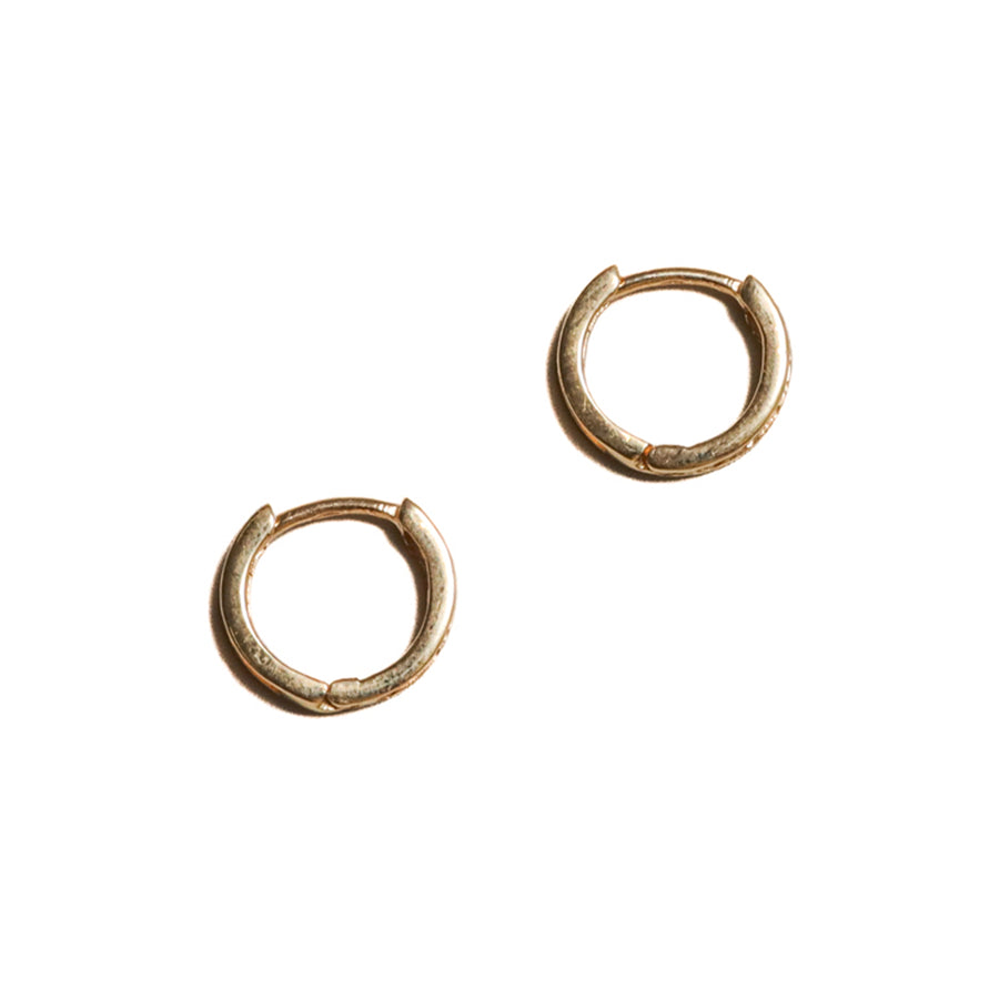 Características: Argollas huggies con piedra blanca. Fabricadas en oro de 18K.