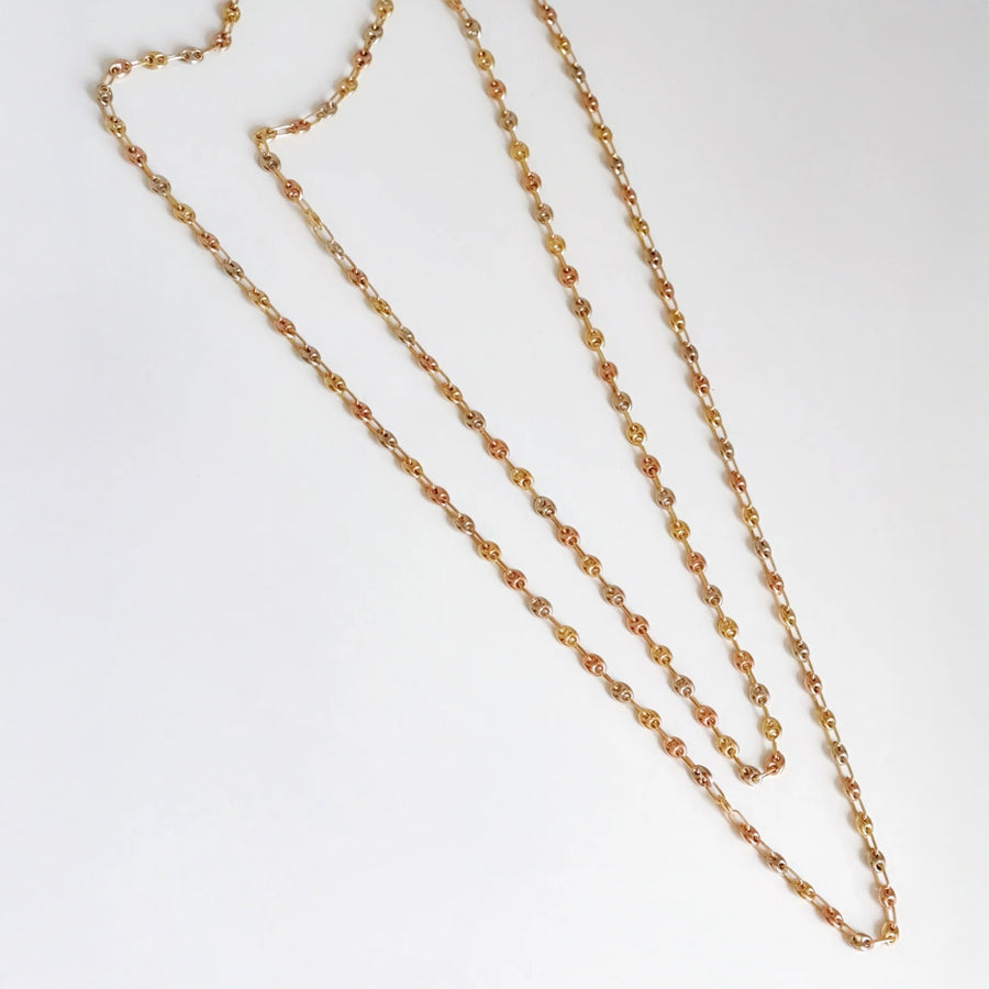 Cadena tejido gucci con los tres oros de 45 cm de largo. Elegante y versátil, ideal para uso diario o para ocasiones especiales.