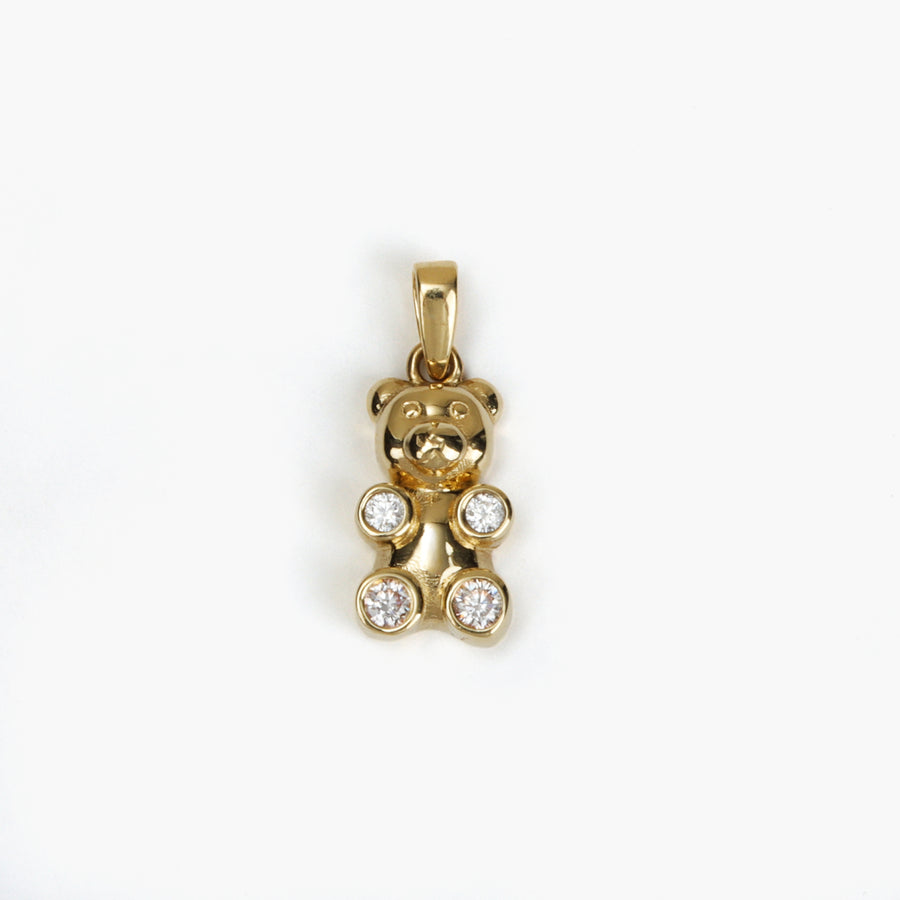 Dije oso mini de 1.5cm de largo con circones en extremidades, en oro amarillo italiano 18k.
