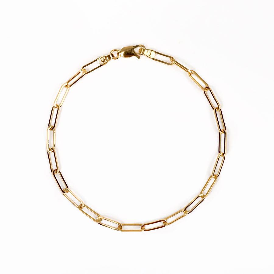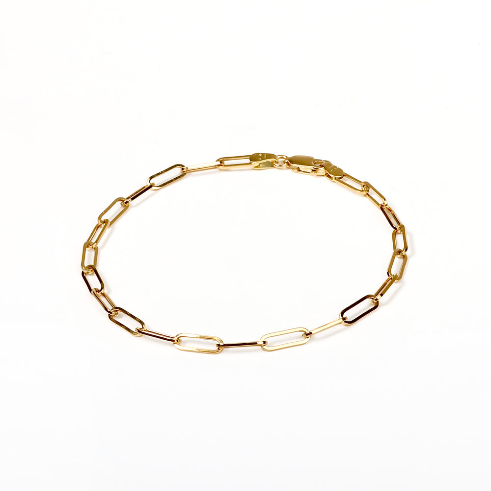 Pulsera tejido Paper clip 3mm de ancho y 18cm de largo en oro amarillo italiano 18k.