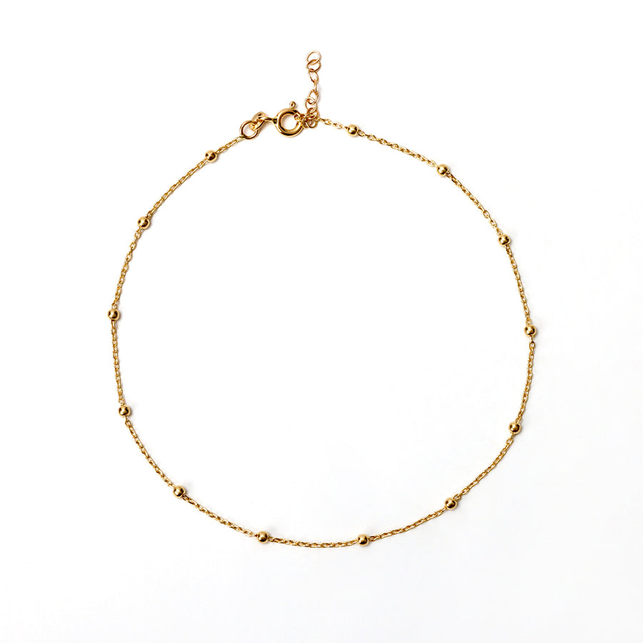 Tobillera 1mm con Balines lisos 2mm ajustable entre 23cm a 25 cm de largo en oro amarillo italiano 18K.