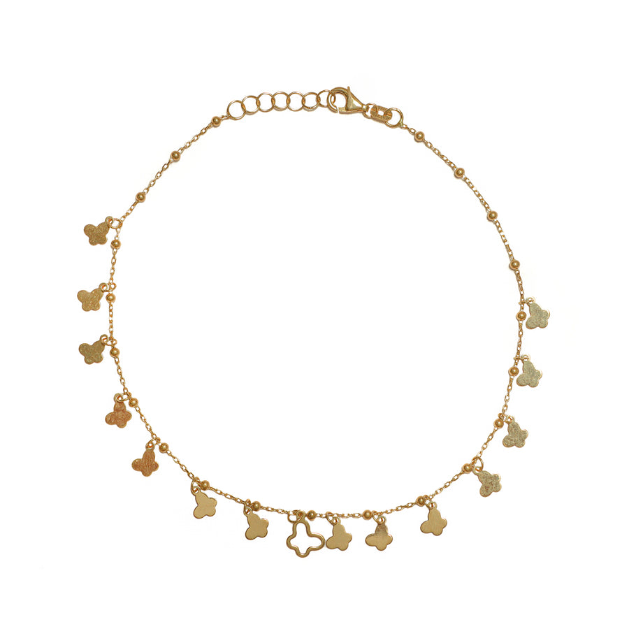 Tobillera con dijes mariposa 25cm de largo en oro amarillo italiano 18K.