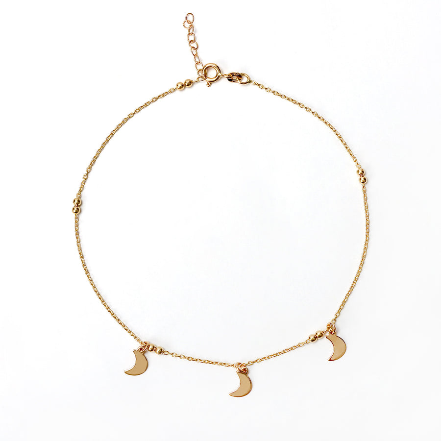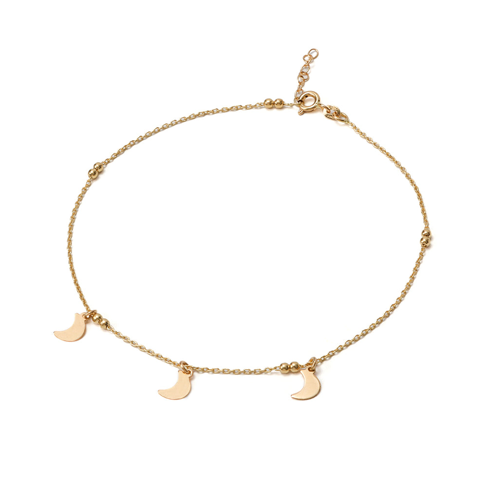 Tobillera 1mm con Lunas ajustable entre 22.5 cm a 24.5 cm de largo en oro amarillo italiano 18K.